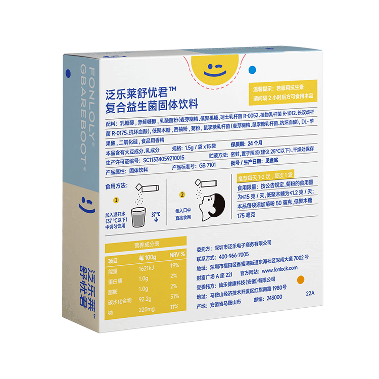 泛乐莱 舒忧君磷脂酰丝氨 酸 (PS)益生菌固体饮料(8盒装...
