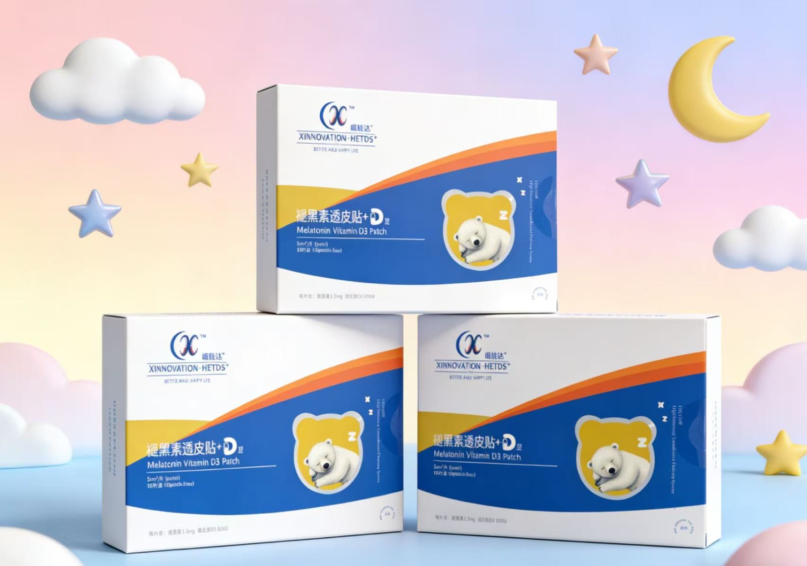 褪黑素透皮贴(+D型)3盒1月装